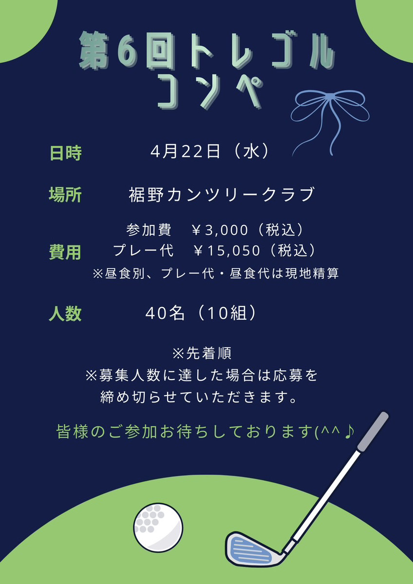 ②予約≫コンペ申込より4月22日(水)まで進み〖第6回トレゴルコンペ〗枠を予約